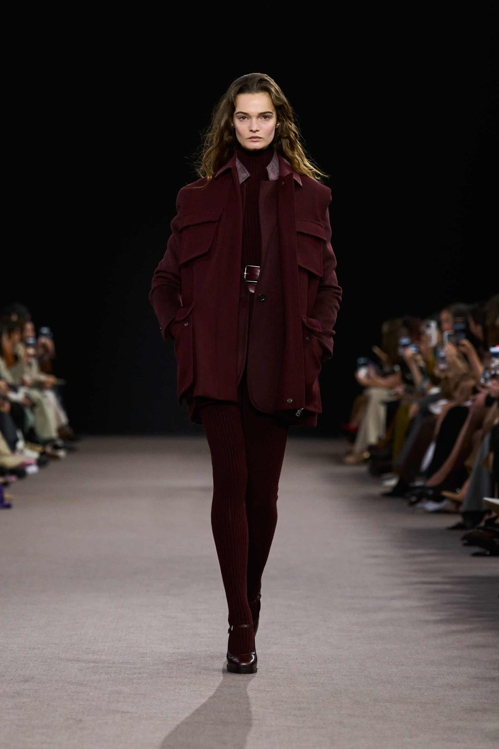 品牌标志性的大衣品类变幻多元形态:从军装风长外套、礼服大衣、奢华派克装,到斗篷式设计与宽大裹身款。古典马裤被重新演绎为带柔褶的现代裤装,马甲也以缩短版型与乡村风绗缝夹克两种形式回归。