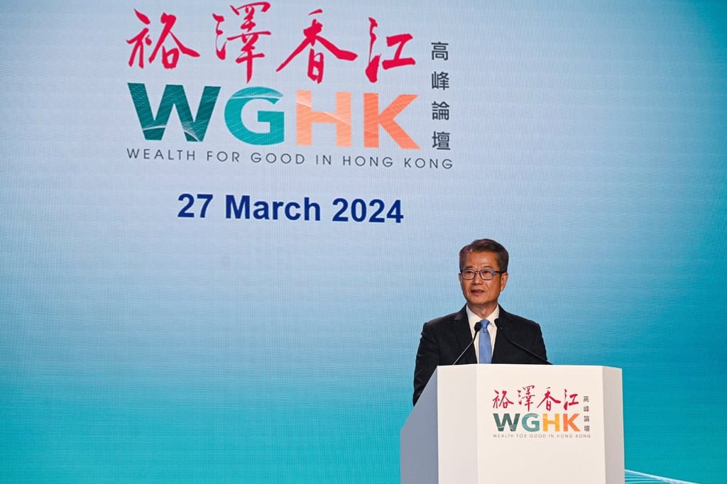 财政司司长陈茂波在2024年3月27日的“裕泽香江”高峰论坛上发言。图片来源:政府新闻处