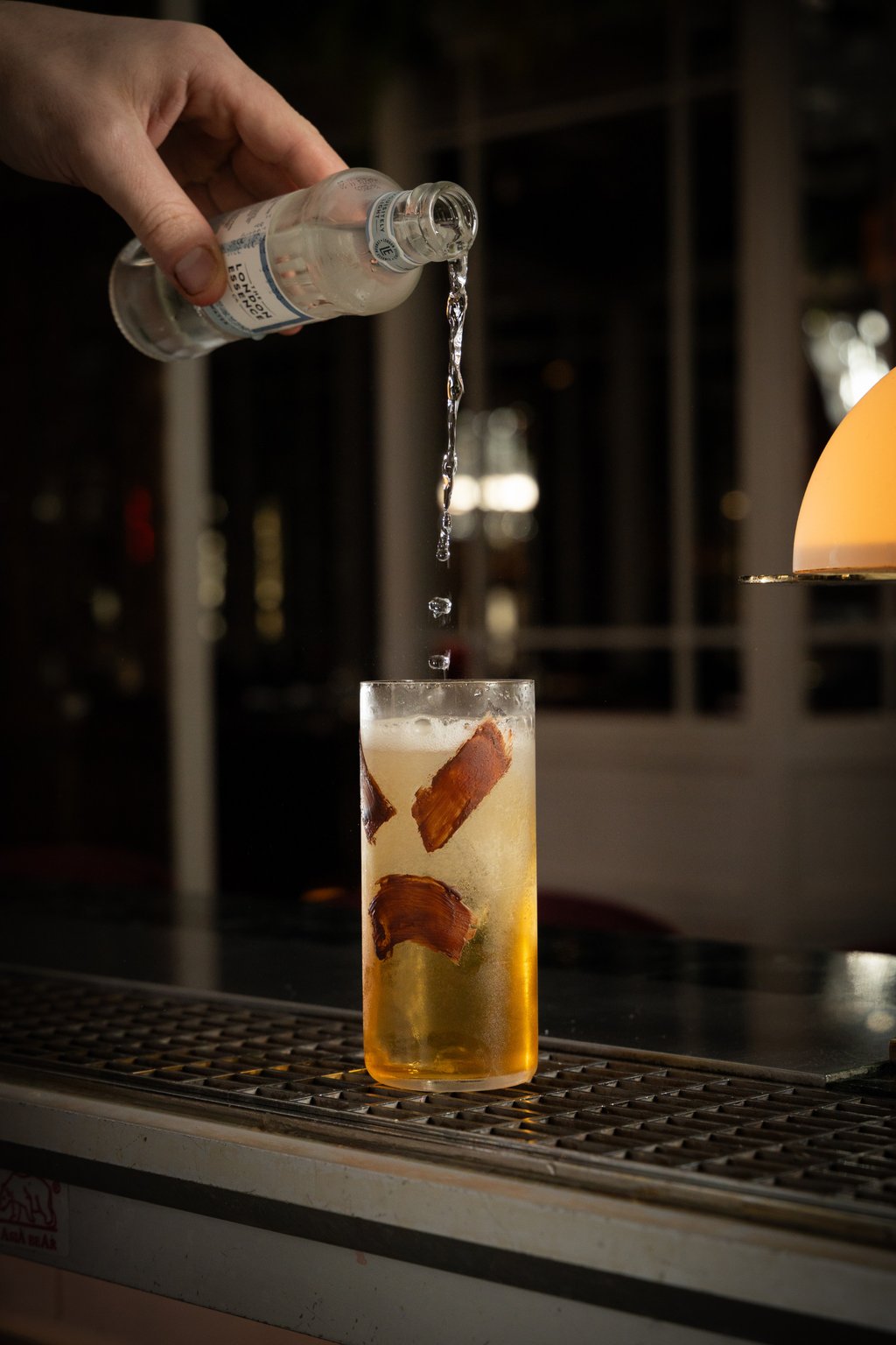 酒店内其他区域,船长酒吧推出"喜剧演员"特调,在经典尼格罗尼中加入香蕉、马萨拉酒和椰子元素,灵感源自意大利艺术家莫瑞吉奥·卡特兰的同名爆红作品。千日里酒吧则通过一款改编版金酒酸酒"自画像",向画家乔治·千日里致敬。