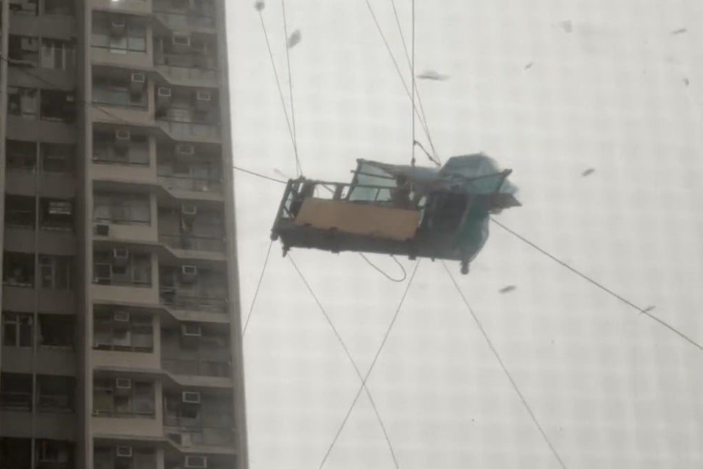 香港平台工人在强风中惊险逃生 悬空摇晃 | 南华早报