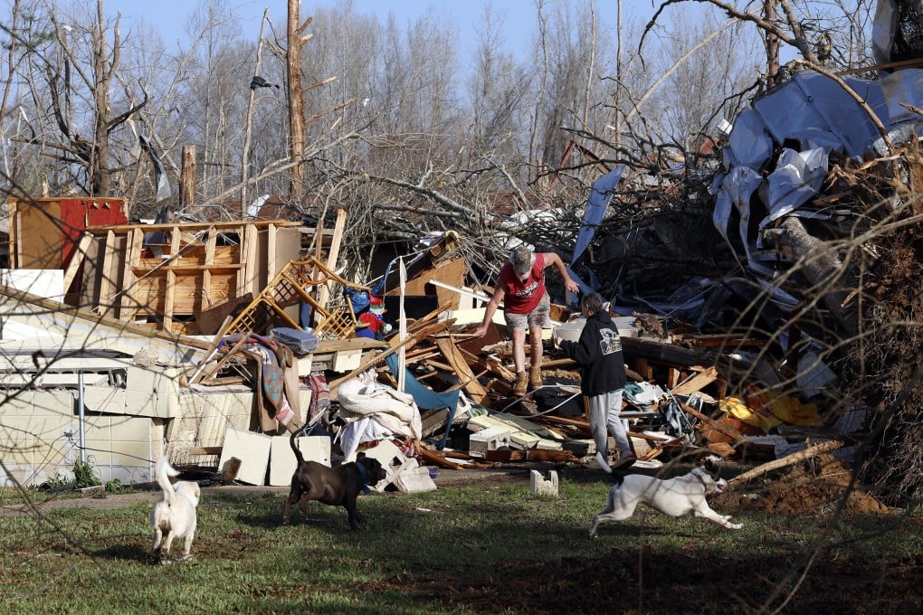 史蒂维·卡拉在密苏里州波普勒布拉夫的家被毁后寻找个人物品。照片:法新社