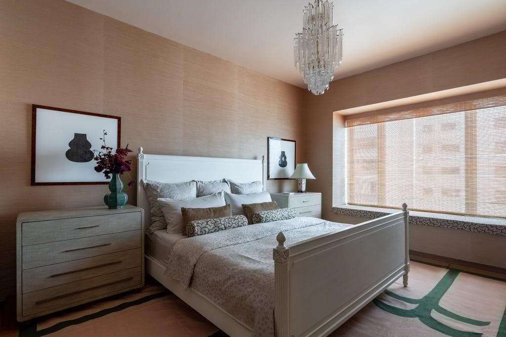 她与丈夫最初住在相邻楼栋,但随着子女出生——现年四岁的儿子和一岁的女儿——他们意识到需要更大空间。目前这套三卧三卫的公寓,正位于她16年挚友兼商业伙伴露西亚·泰特·托拉尼的居所上层。二人于2023年联合创立电商平台Permanent Resident,精选独特的新品、升级改造家具、二手及古董家居饰品,去年更在大馆开设了呼应平台理念的家居精品店。“租房的乐趣在于它提供了尝试新事物的机会,而粉刷墙壁就是一种可以非永久性改变空间的有趣方式,”麦克莱兰·雷诺兹说道。“在我之前的公寓里,我用了浆果色和蓝色的色调,甚至有一个房间完全刷成黑色。但搬到这里后,我决定尝试更清新的配色。我喜欢在卧室采用柔和的色调,但你依然能在其中看到色彩。”
