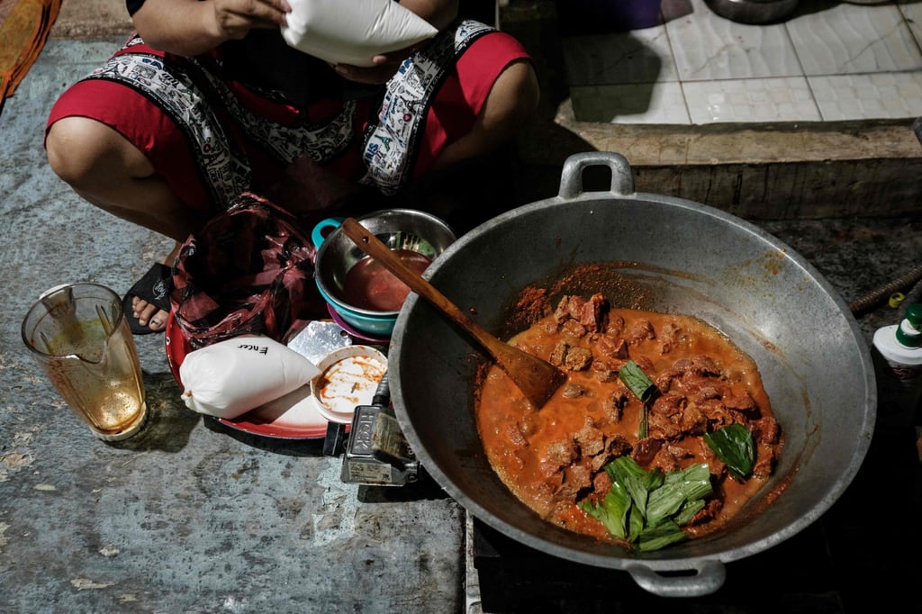 一名妇女在班达亚齐为家人烹制仁当,这道印尼菜肴以椰奶和香料慢炖而成。照片:法新社