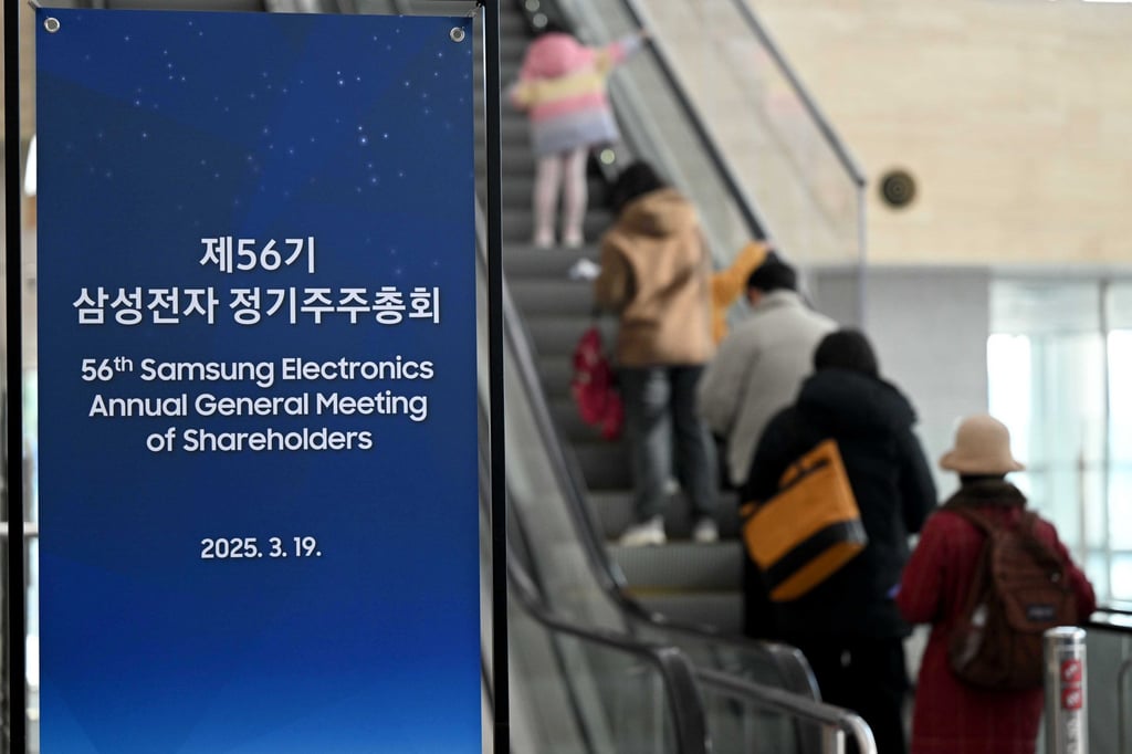 2025年3月19日,三星电子股东抵达韩国水原市股东大会现场。照片:EPA-EFE