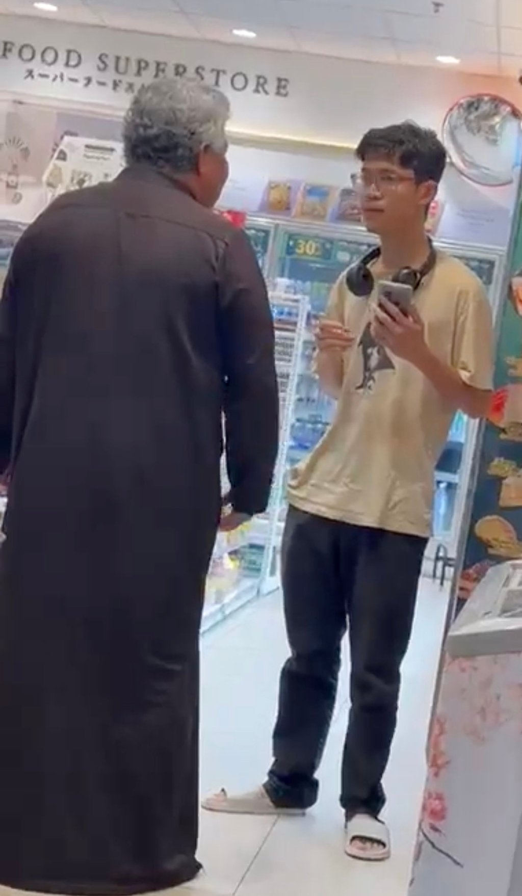 社交媒体视频截图显示,黑袍男子正与21岁受害者对峙。图片来源:网络流传
