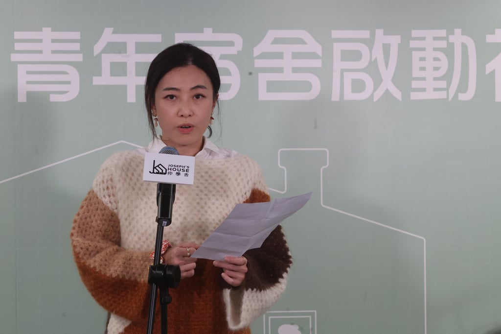 华人置业行政总裁陈凯韵(甘比)出席2023年12月深水埗「约瑟之家」青年旅舍开幕仪式。摄影:Edmond So