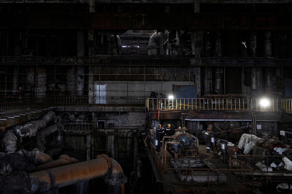 员工在一座因多次俄罗斯导弹袭击而受损的热电厂工作。照片:路透社