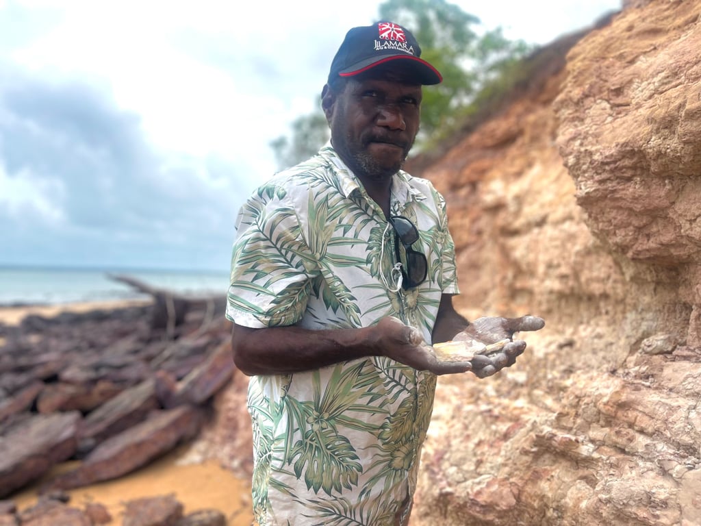沃纳米尔里在梅尔维尔岛米利卡皮蒂的悬崖采集赭石。摄影:凯莉·诺特