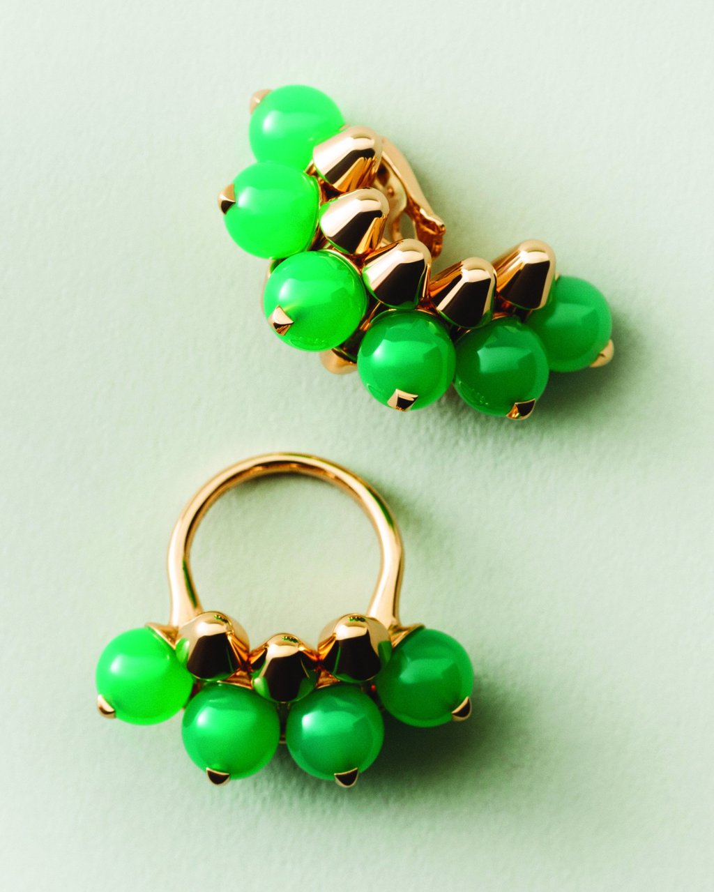 卡地亚Clash系列戒指与单只耳环,均镶嵌绿玉髓。图片:品牌提供