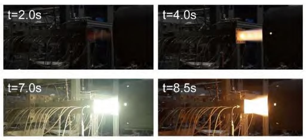 使用镁粉使高超音速飞行器推力倍增的加力燃烧室测试。图片来源:北京航空航天大学
