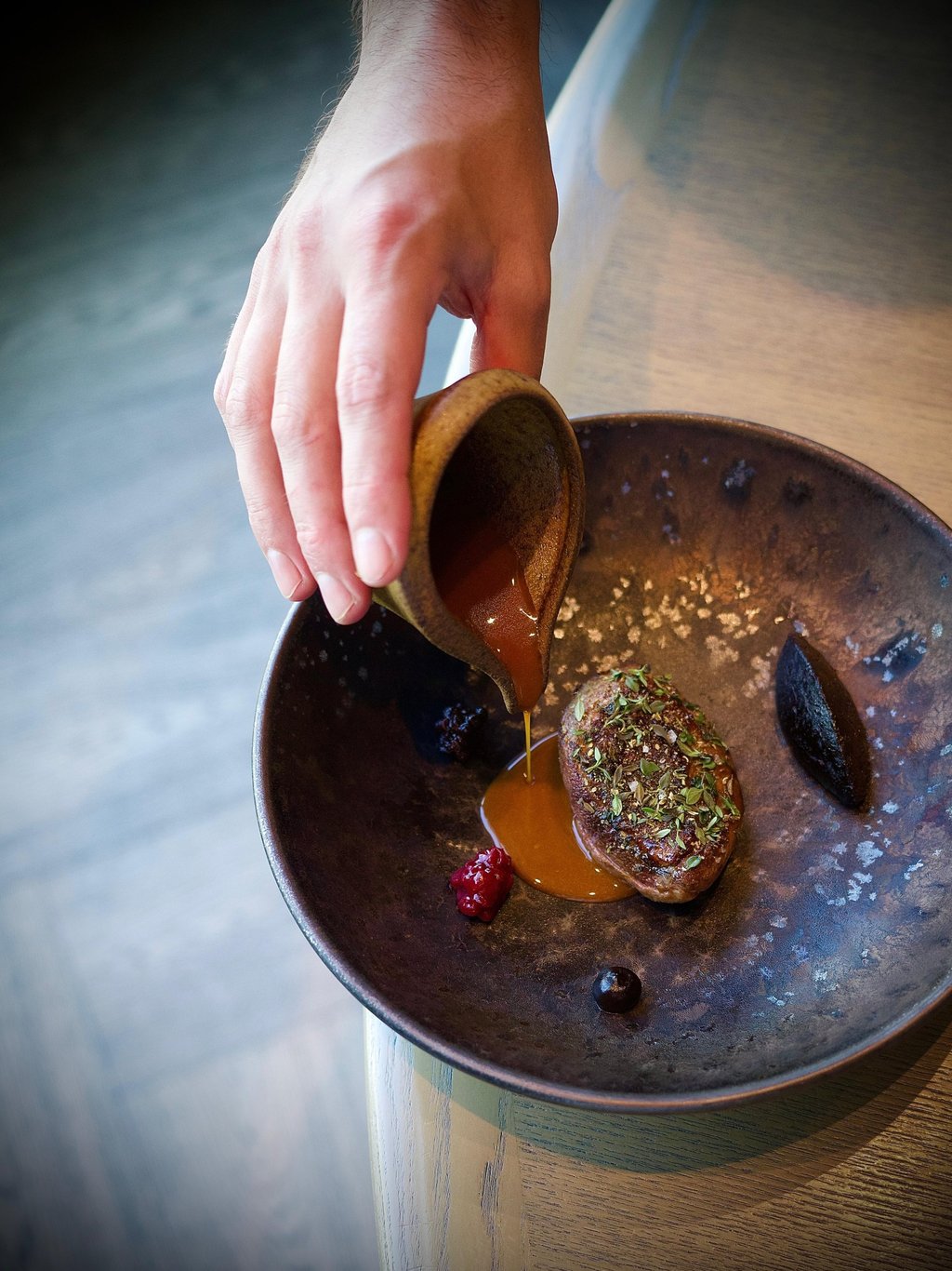 雅柏餐厅的法式蒜香黄油烤鸽胸。图:雅柏