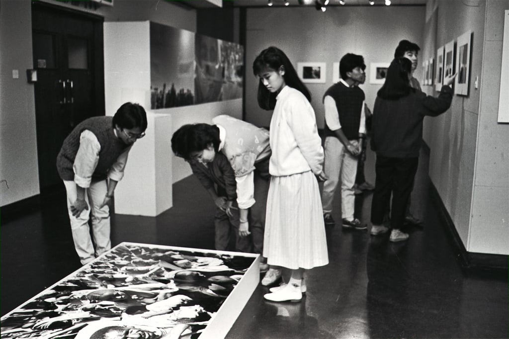 1986年,观众在香港大会堂参观摄影师水禾田题为《东非》的摄影展。图片来源:南华早报档案