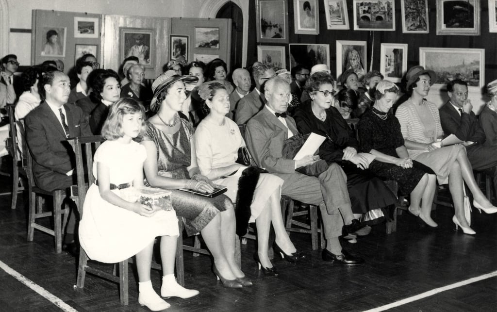 1950年代末,香港艺术会于圣约翰座堂大厅举办展览开幕式。图片来源:D’Almada Barretto收藏馆