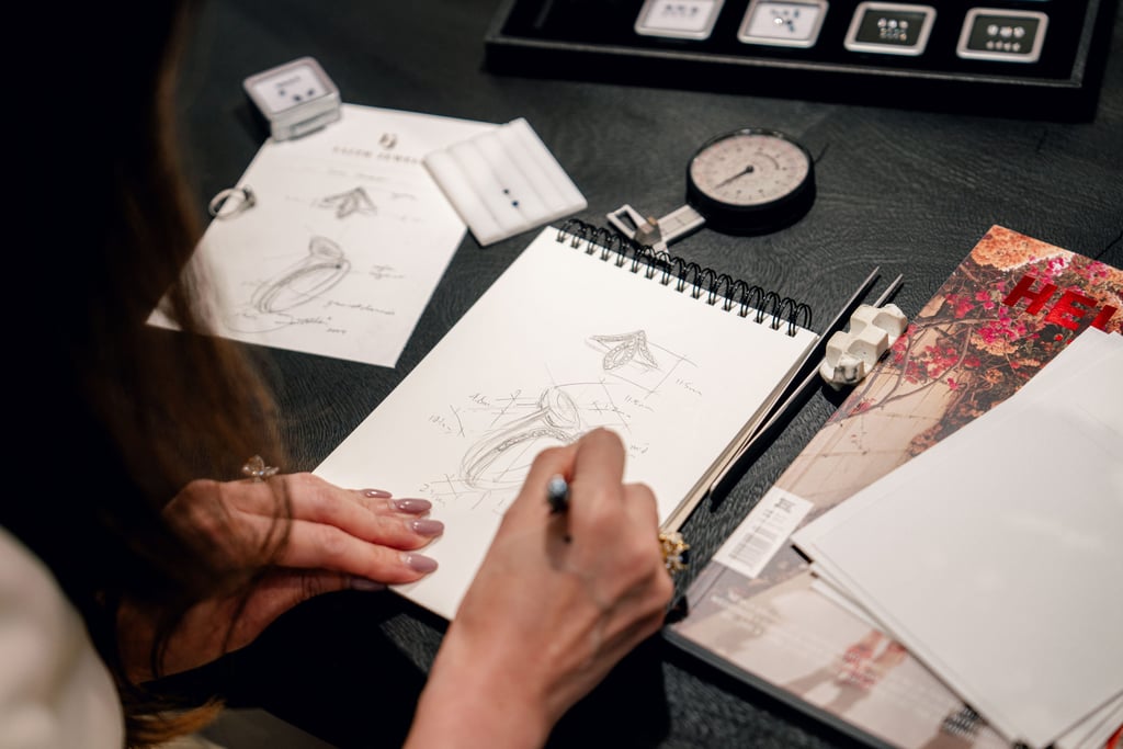 “这个过程让我能直观感受珠宝与佩戴者的互动关系,就像房屋与环境的互动。得益于空间设计训练,我能实时将构想具象化,一边与客户绘制草图,一边将他们的故事转化为实体设计。”