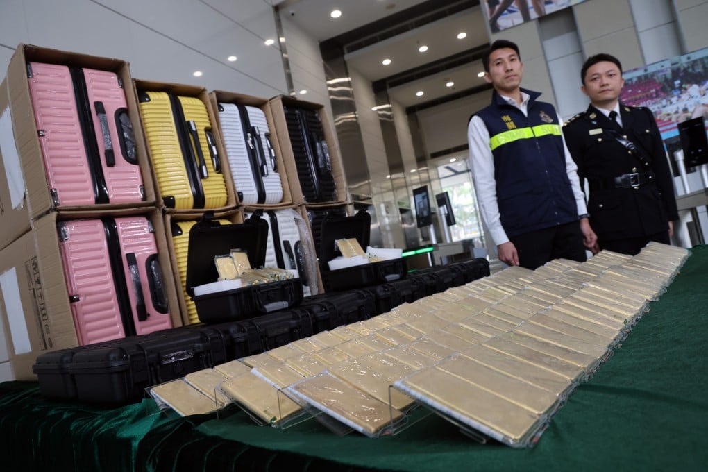 香港海关查获145公斤(320磅)疑似金条,价值1.1亿港元(1410万美元),这些金条被包裹并藏匿在作为飞机货物运输的行李箱中,打破了该市此类查获的最大记录。