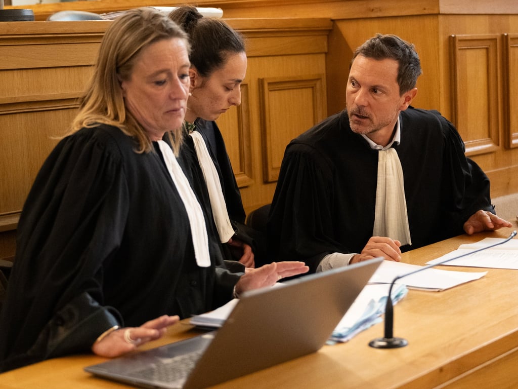 5月4日,布塔用步枪射击这位三个孩子母亲的腿部,向其泼洒汽油并点火焚烧。图为周一庭审开始时,代表受害者父母的律师朱利安·普鲁东(右)在法庭。摄影:EPA-EFE
