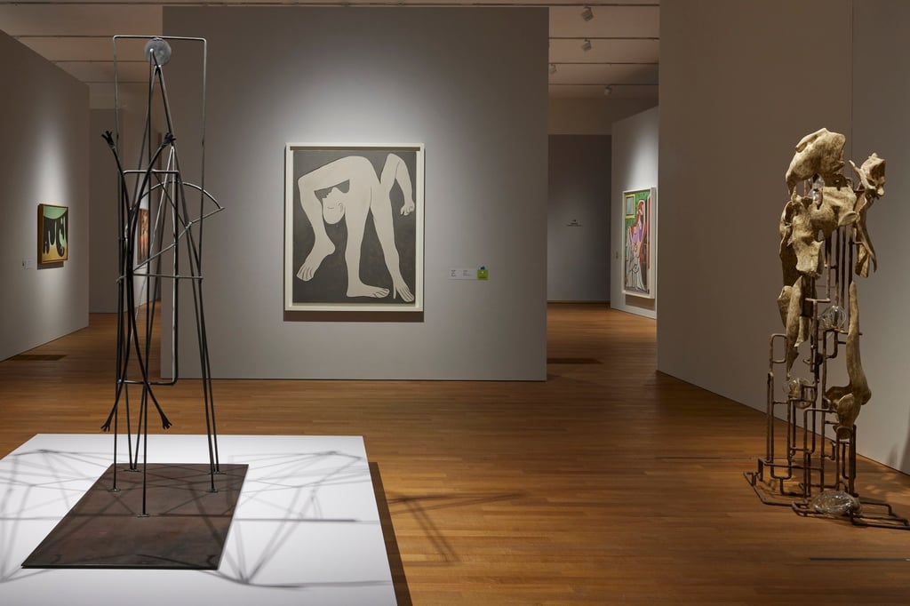 例如从1940年代末到1973年去世期间,毕加索发展出与早期作品阴暗意象截然不同的童稚风格。这一阶段他的画布上充满活力笔触,同样对纯真的渴望也体现在参展日本艺术家田名网敬一的作品中——他在新冠高峰期从米老鼠、阿童木和奥特曼等卡通形象中汲取灵感。这些作品以对话形式呈现,彰显大师对同代人的深远影响。