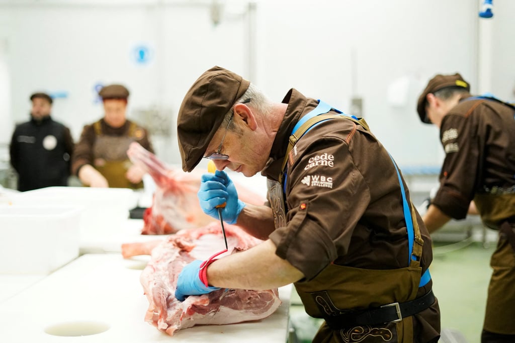 一支代表队的西班牙屠夫首次参加被誉为"肉铺界世界杯"的赛事,这场锦标赛让全球最擅长肉食加工的国家在切割与摆盘艺术上一较高下。