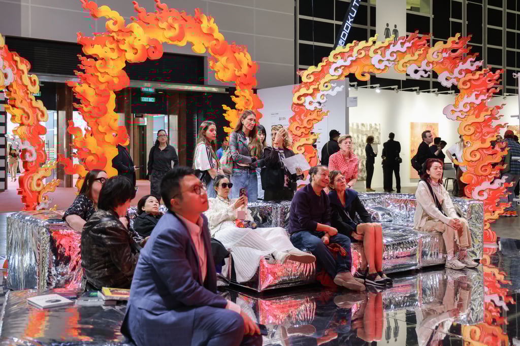 3月26日巴塞尔艺术展上,观众欣赏陆扬的作品《Doku the Creator》。摄影:Eugene Lee