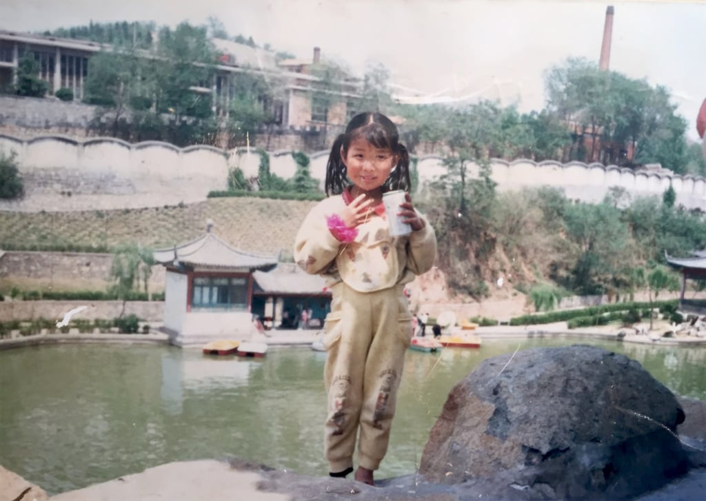 1995年,年幼的贾颖·萨默斯在河南林州市的照片。图片来源:贾颖·萨默斯提供