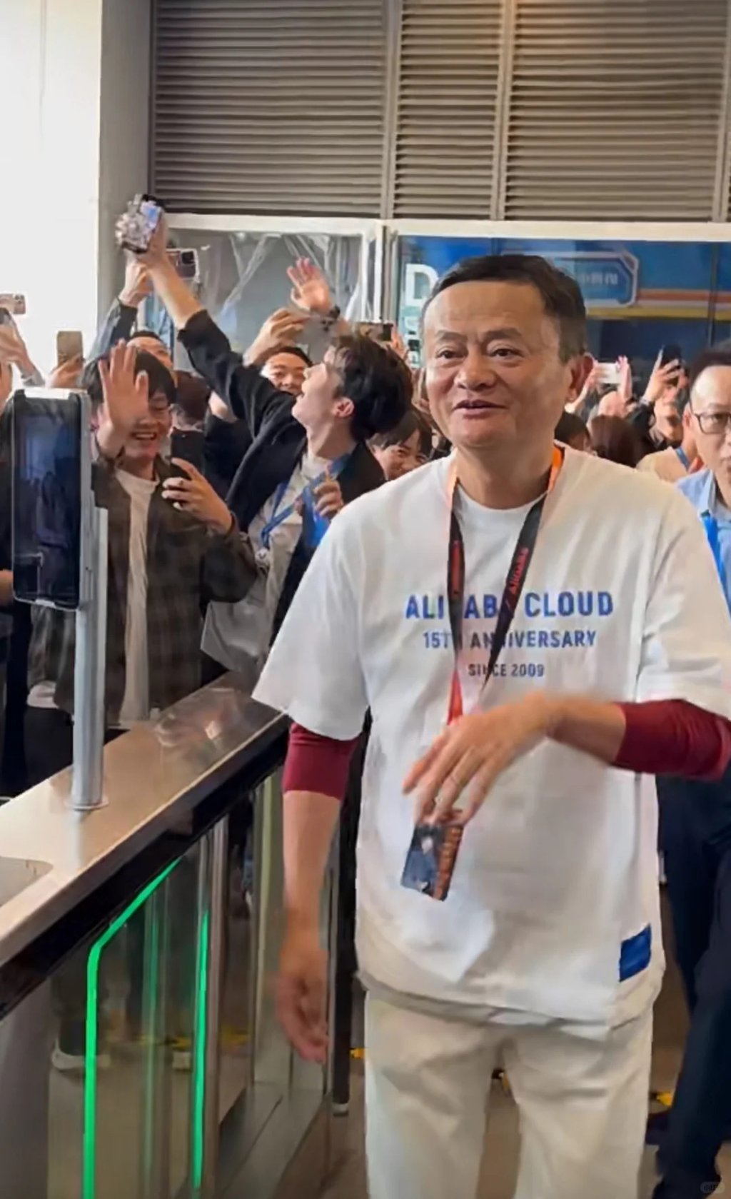 2025年4月10日,马云现身杭州阿里云园区时受到员工热烈欢迎。图片来源:资料图片