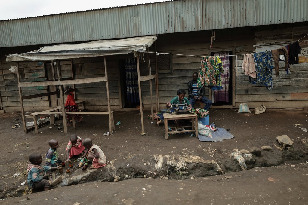 3月,在刚果(金)东部M23叛军控制的鲁巴亚地区,妇女们缝纫时孩子们在玩耍。图片来源:路透社