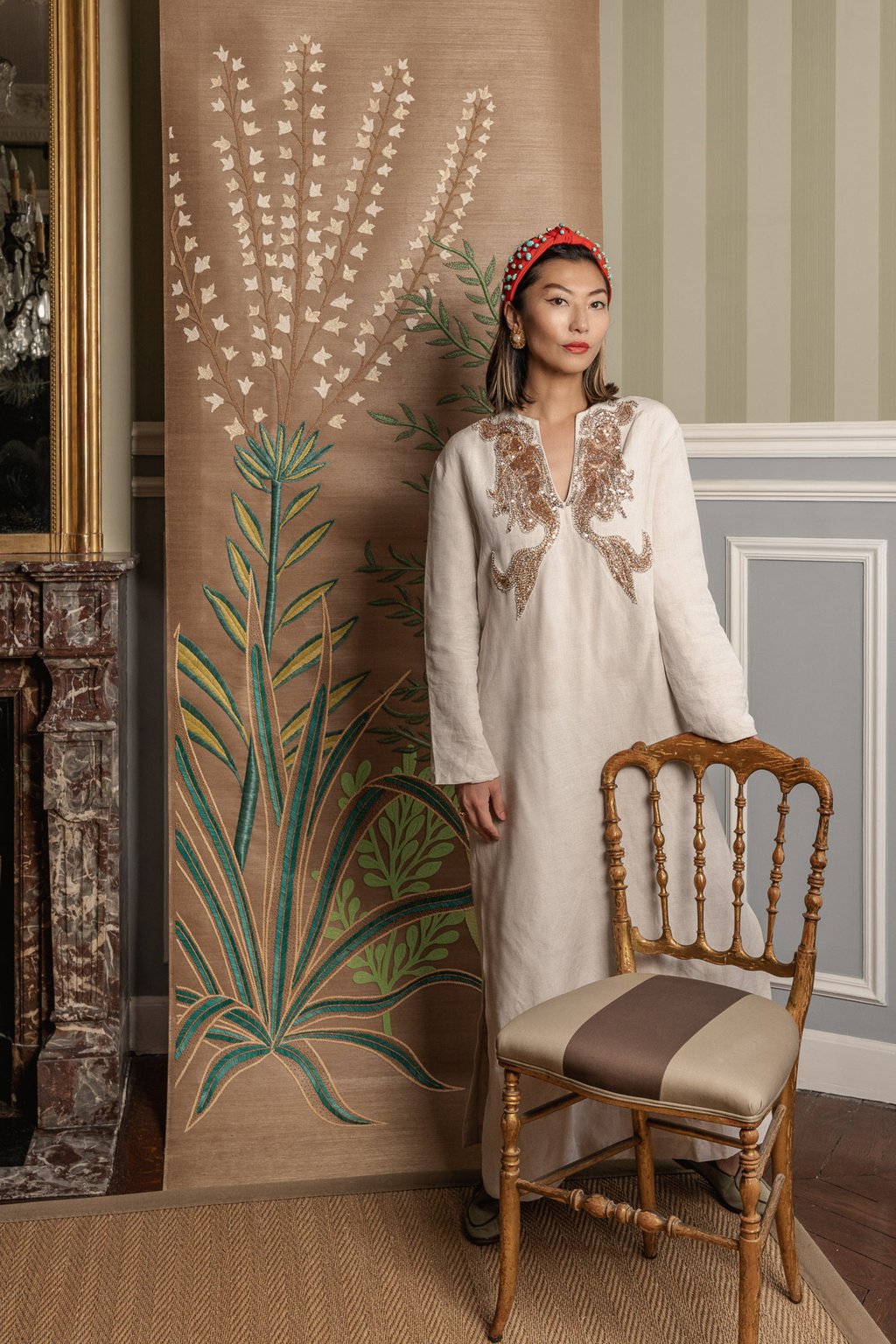 巴黎圣母院的建造耗时两个世纪;一场大火几乎在15小时内将其吞噬;而2019年那场灾难性火灾后的重建工程又花费了五年时间。但这一切与高端壁纸有何关联?高级定制壁纸界权威Laura Cheung Wolf表示,若非世代传承的传统技艺,这项中世纪建筑史上的伟大成就可能永远无法重现。这正是为何这位家居装饰与生活方式品牌Lala Curio的创始人认为,必须持续培养新一代工匠——比如那些运用数百年历史的工笔技法,手工绘制并刺绣她那些梦幻中式壁纸的匠人们。