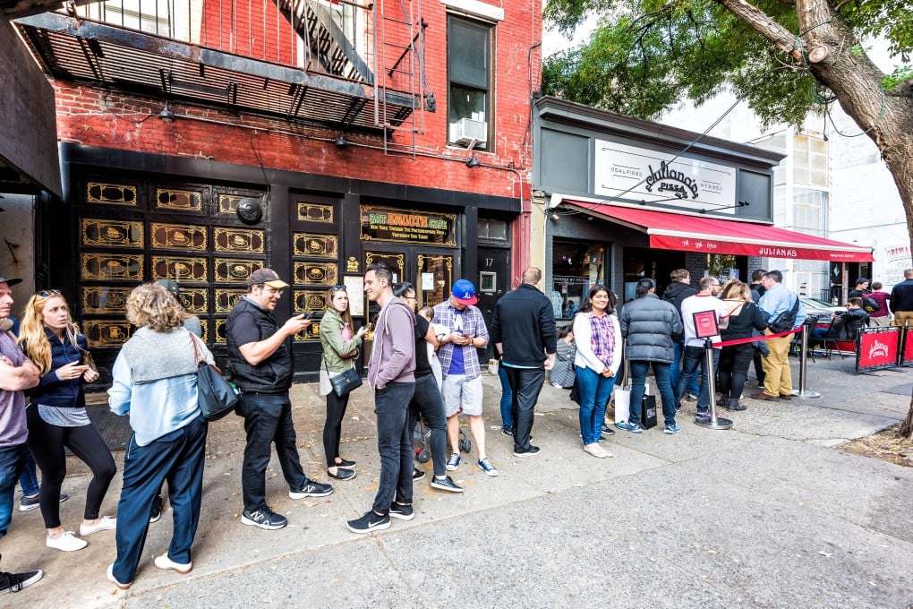 纽约Prince Street Pizza餐厅外排队等候的人群。图片来源:Shutterstock