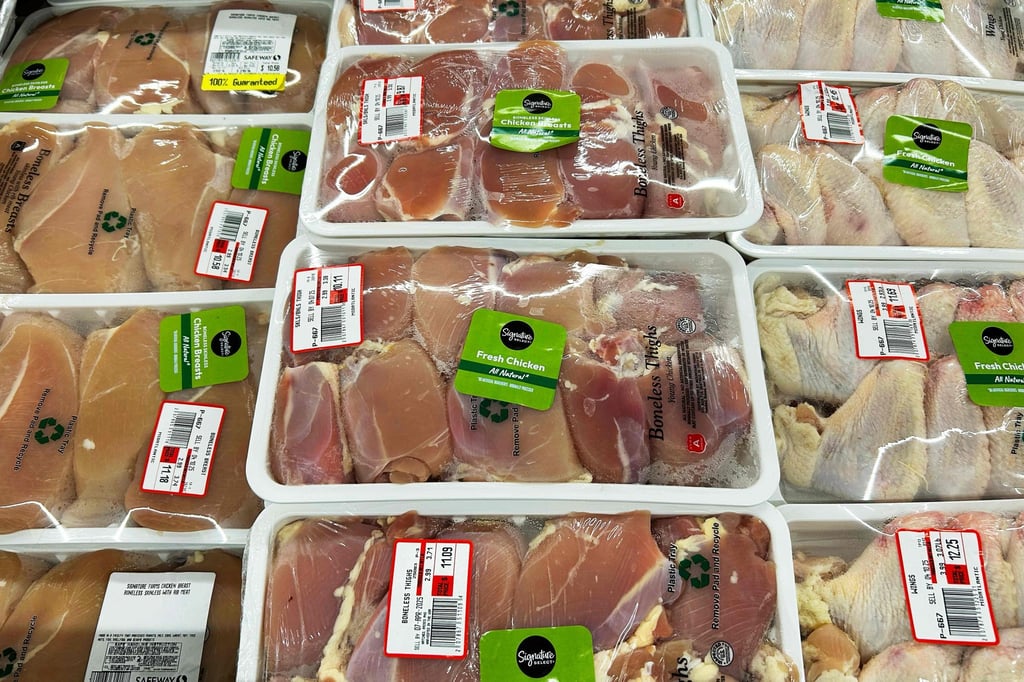 4月4日,马里兰州安纳波利斯一家商店出售的鸡肉。美国和加拿大常见的用氯水清洗生鸡肉等做法在许多其他国家是被禁止的。照片:法新社