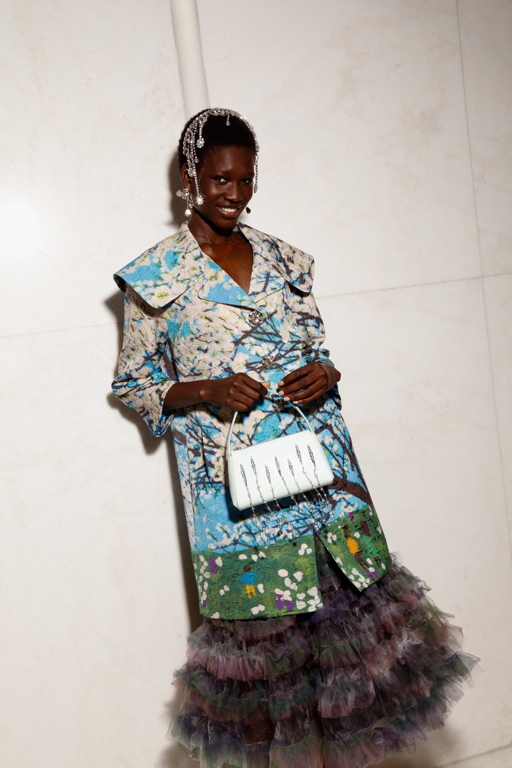 “我们在米兰的秀是关于那些塑造我们的幸福记忆,”设计师这样描述系列中各式印花——它们源自她母亲画作的再现。“因此我们连接了母亲的记忆、中国艺术与文化记忆。这关乎拥抱当下,珍视父母或所爱之人留下的所有过往记忆,它们已成为我们生命中强大的组成部分。”