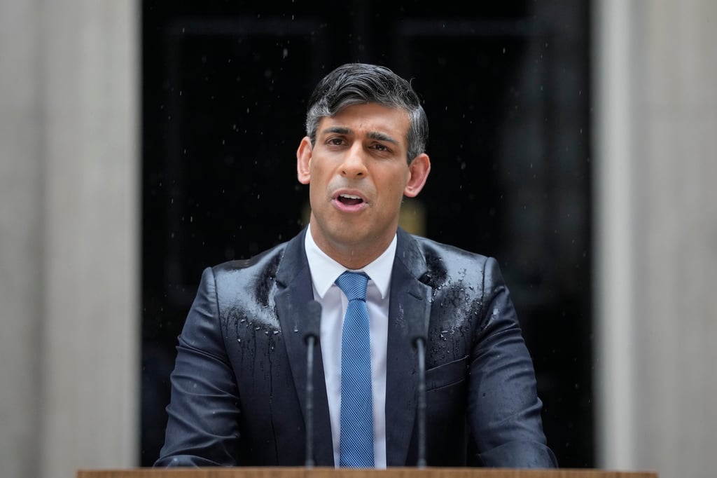 2024年5月22日,英国时任首相苏纳克宣布将于7月4日举行大选。一名前议员及另外14人因涉嫌利用苏纳克选举时间安排进行内幕投注面临指控。照片:美联社