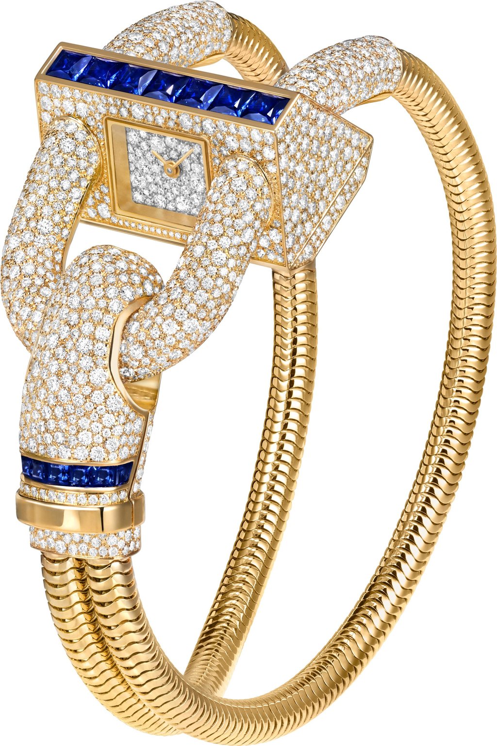 梵克雅宝Cadenas黄金与白金腕表,镶嵌蓝宝石与钻石。图片:品牌提供