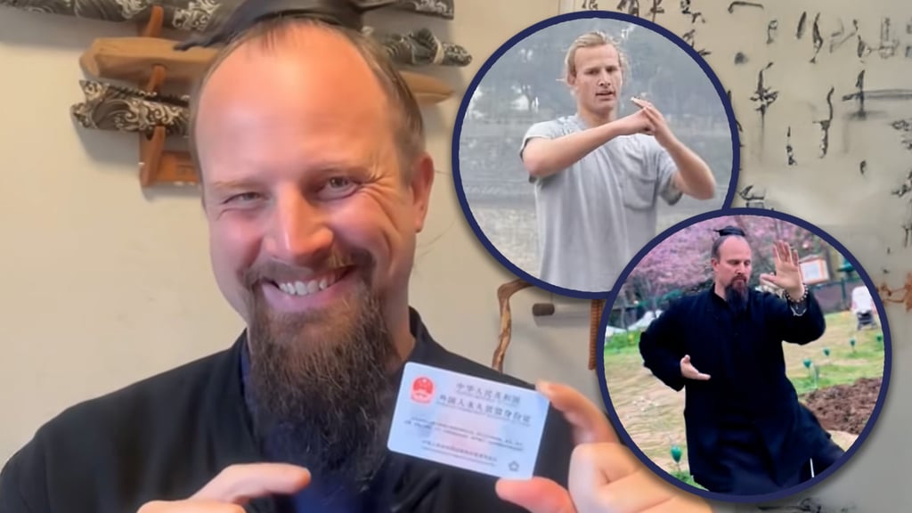 一位为实现武术梦想来华15年的美国男子近日获得中国永久居留权。图片来源:南华早报合成/抖音