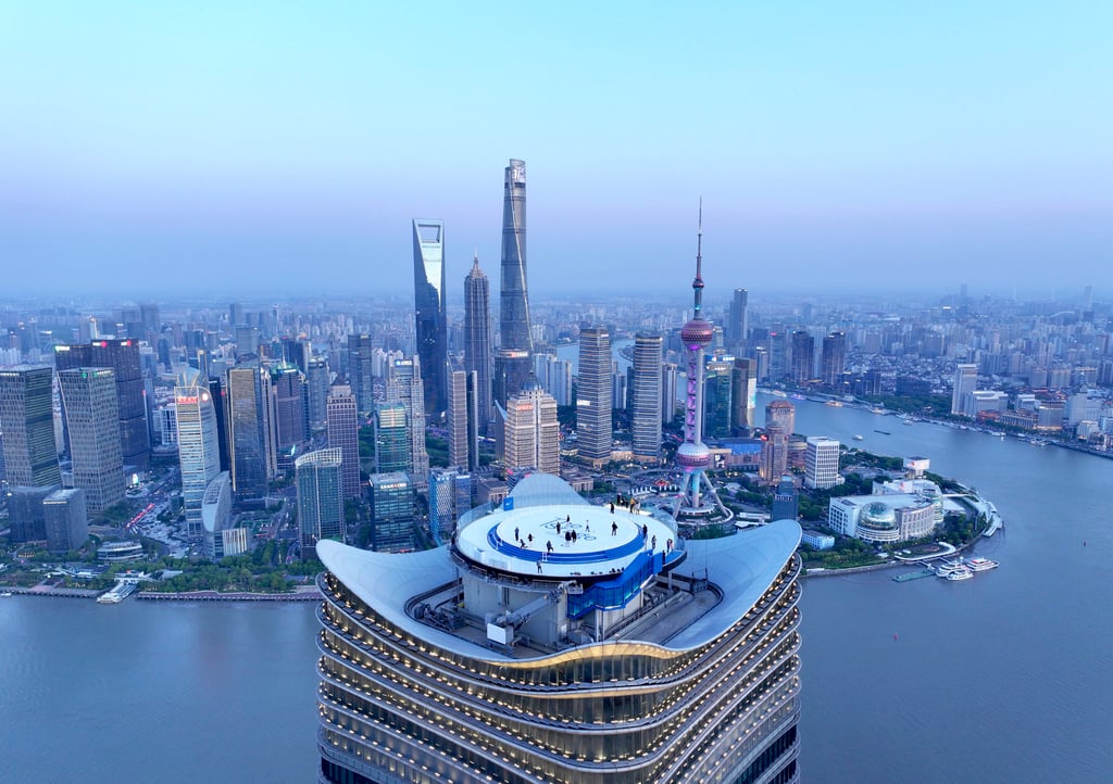 上海白玉兰广场顶层的全新观景平台“The Stage”已正式向公众开放。图片来源:新华社