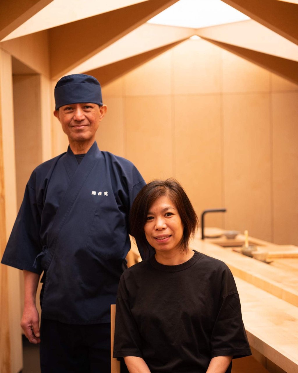 木村千鹤子与丈夫木村俊荣在巴黎寿司俊荣餐厅的合影。照片来源:@sushishunei/Instagram