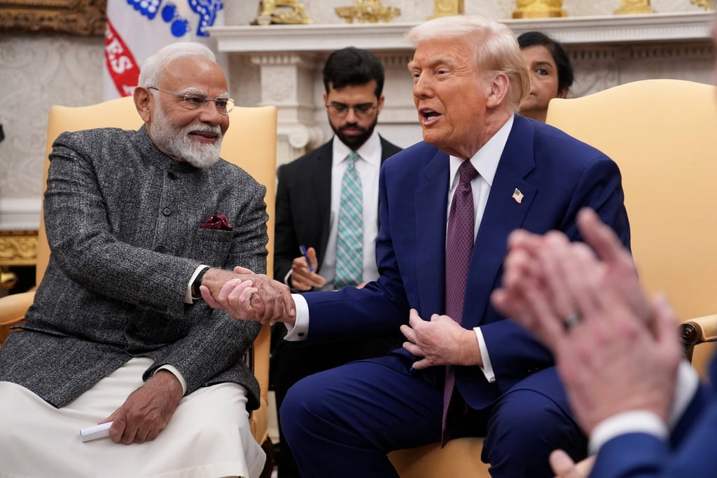 印度总理纳伦德拉·莫迪2月于白宫与美国总统唐纳德·特朗普握手。图片来源:Getty Images/TNS