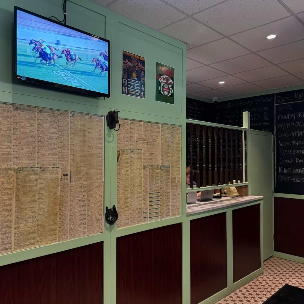 店内设有复古投注柜台、列着赛马赔率的黑板,甚至还有播放香港赛马精彩集锦的电视屏幕。