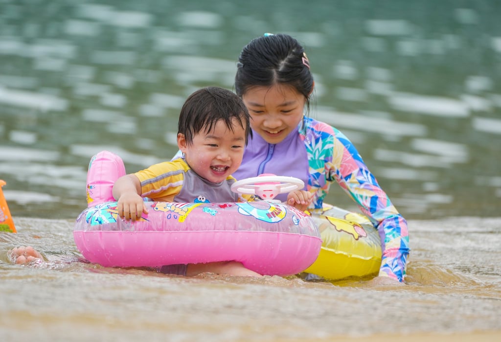 浅水湾海滩上享受温暖天气的儿童。摄影:Sam Tsang