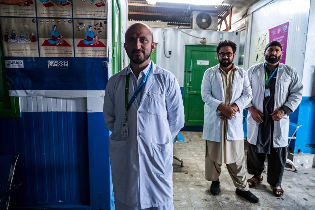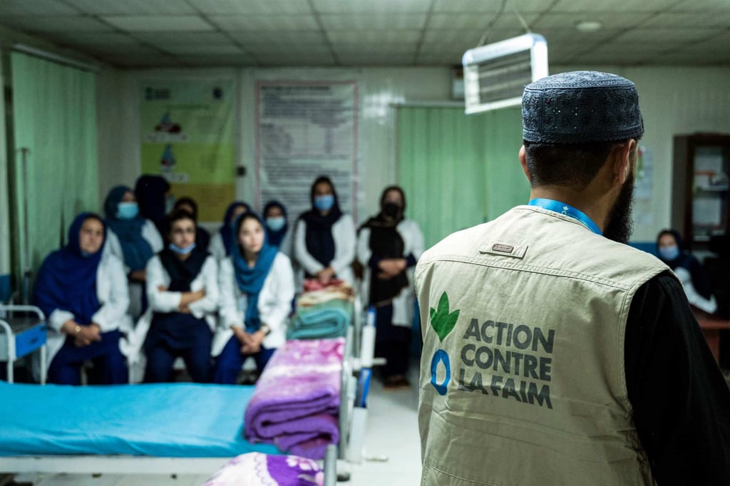 法里德·艾哈迈德·巴拉卡齐博士(右)周一在阿富汗喀布尔一个停止运作的治疗性喂养中心(TFU)向阿富汗医务人员讲话。这个完全由华盛顿资助的项目在美国冻结所有援助后不得不关闭。照片:法新社