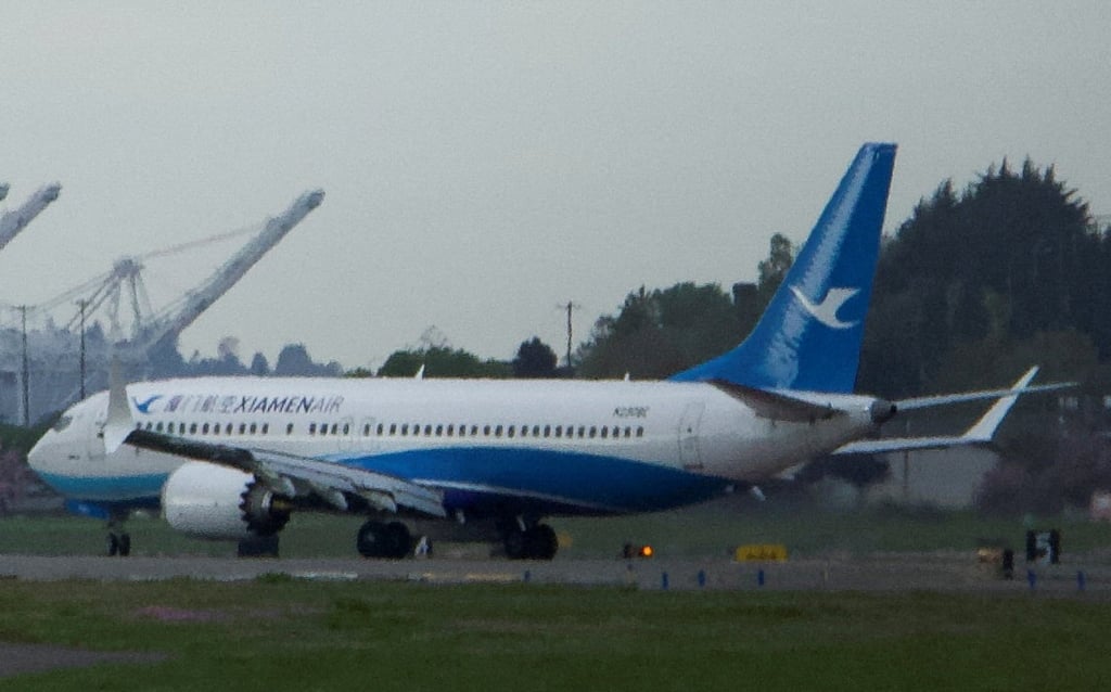 一架原定交付中国厦门航空的波音737 Max飞机,因持续关税争端从中国返航后,于周六抵达西雅图金县国际机场。图片来源:路透社