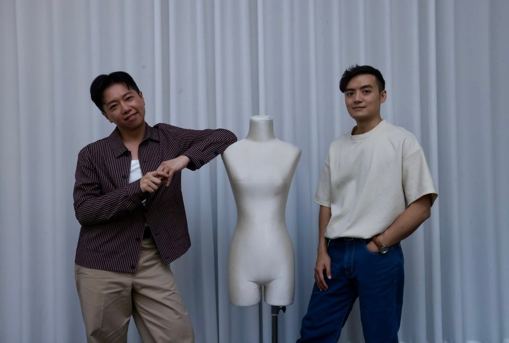 《海德薇格与愤怒的一英寸》创意总监林奕华(左)与主演兼剧本译者郑国江。摄影:Jonathan Wong