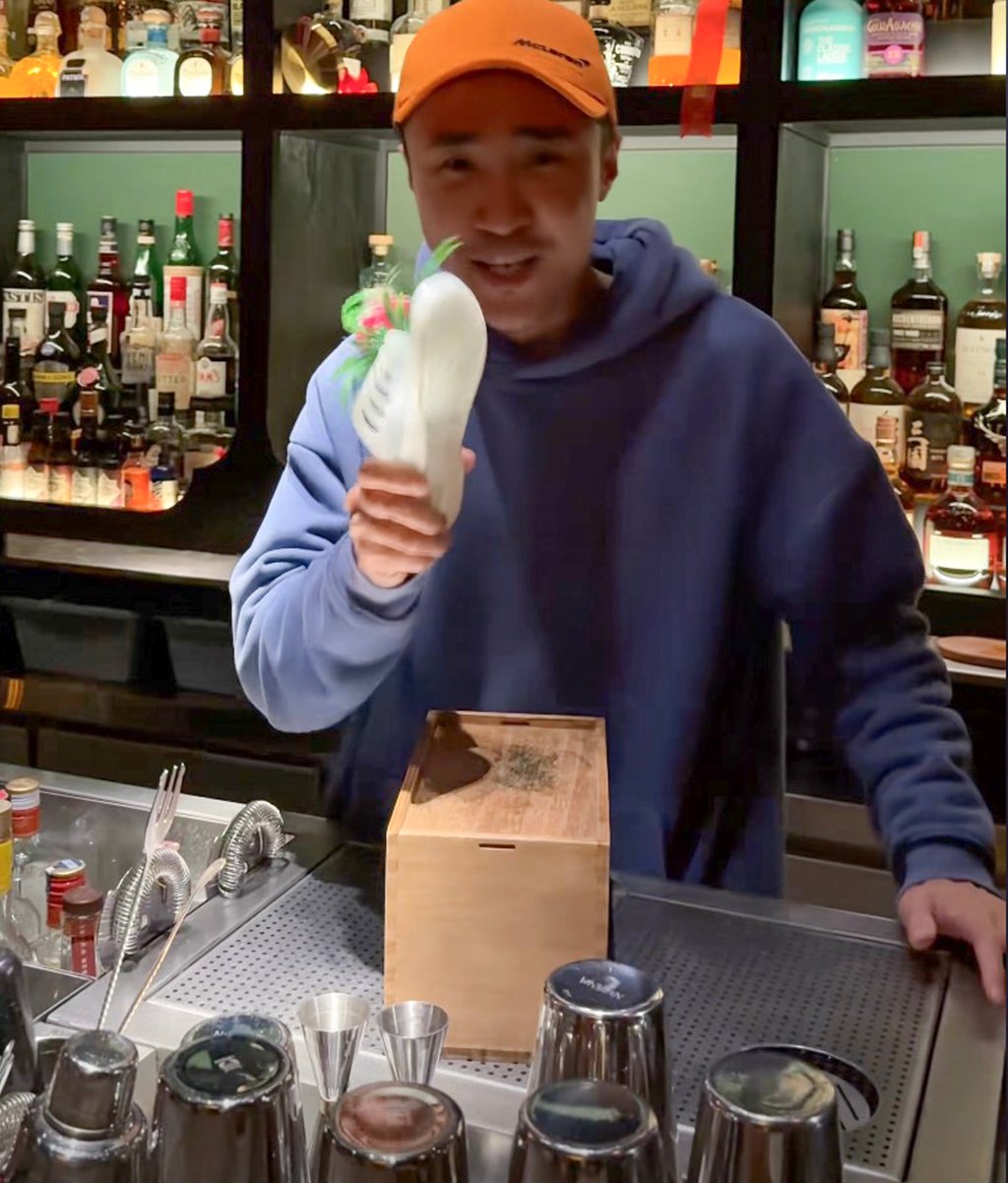 某头部社交平台上一段获赞5万次、分享13万次的视频显示,顾客点单后,服务员会端来木盒,内盛鸡尾酒一杯,盒盖上放有一只塑料女式拖鞋。