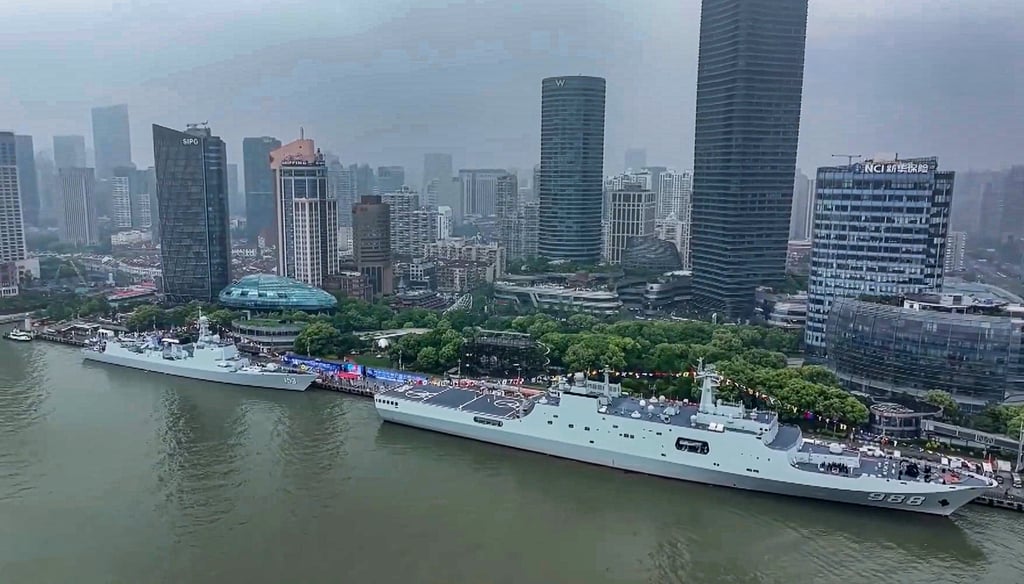 4月24日,中国海军"咸阳舰"和"沂蒙山舰"停泊在上海参加海军成立纪念活动。图源:央视新闻