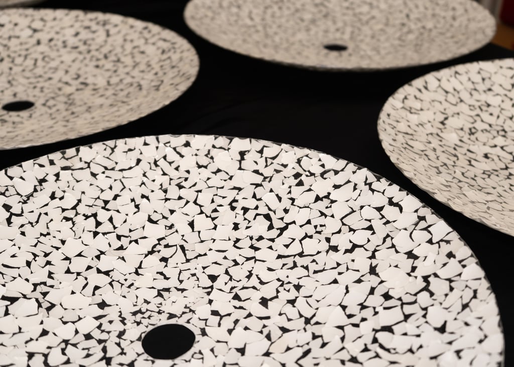 “试试捏碎它,”黄点工作室合伙人Dilara Kan说着递给我一小片干燥蛋壳。当这个珍珠色的碎片夹在我的拇指与食指之间时,我能感受到这种全球最常见废弃物的双重特性——它既坚硬又布满气孔,碎片能轻易弯折,但施加足够压力时便会发出类似玻璃碰撞的清脆碎裂声。“摆弄它是不是很有趣?”
