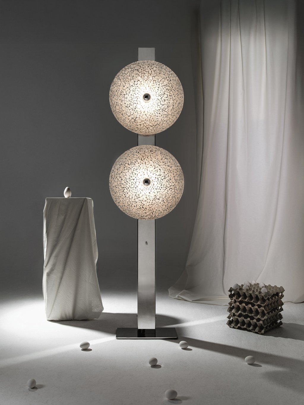 黄点工作室"孵化"系列落地灯由蛋壳与树脂制成。摄影:Ali Gulsener