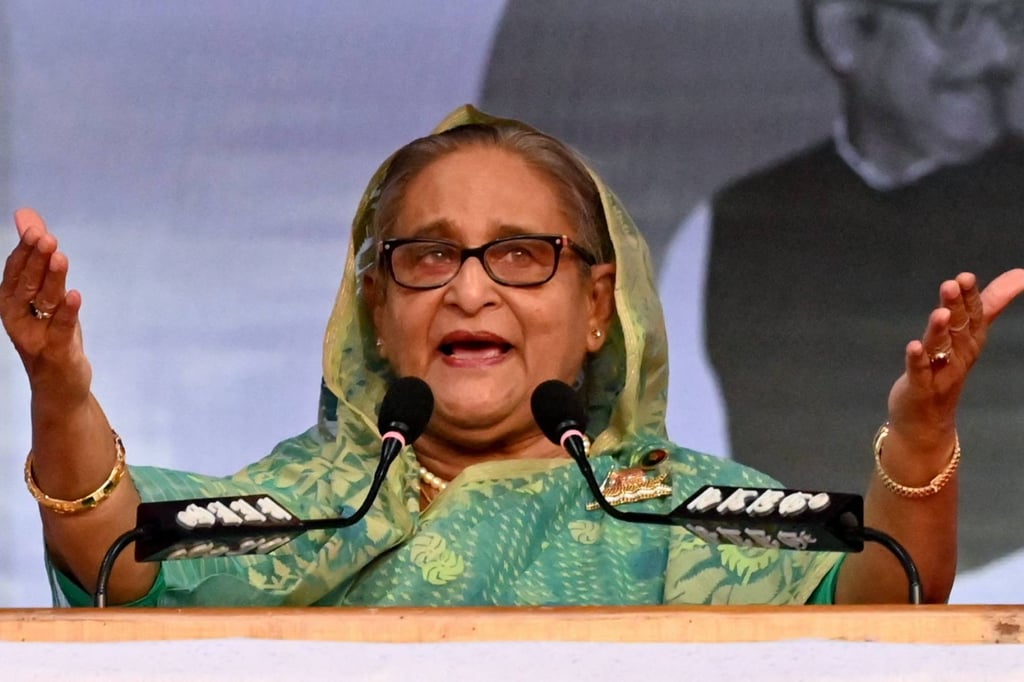 孟加拉国时任总理谢赫·哈西娜在2023年12月的一次集会上讲话。照片:法新社