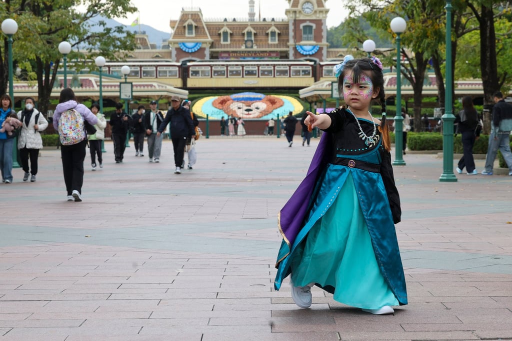 香港迪士尼乐园里一位装扮成《冰雪奇缘》安娜的女孩。照片:Edmond So