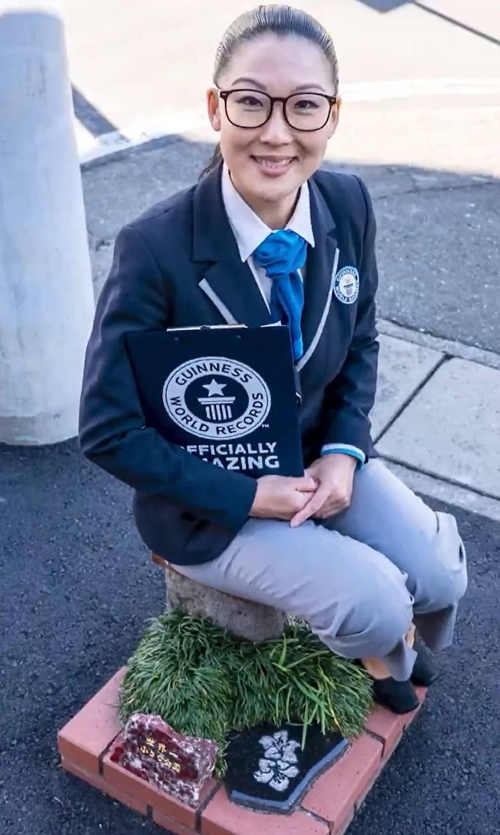 吉尼斯世界纪录认证官坐在日本长泉町全球最小公园的唯一座椅上。图片来源:X/GWR