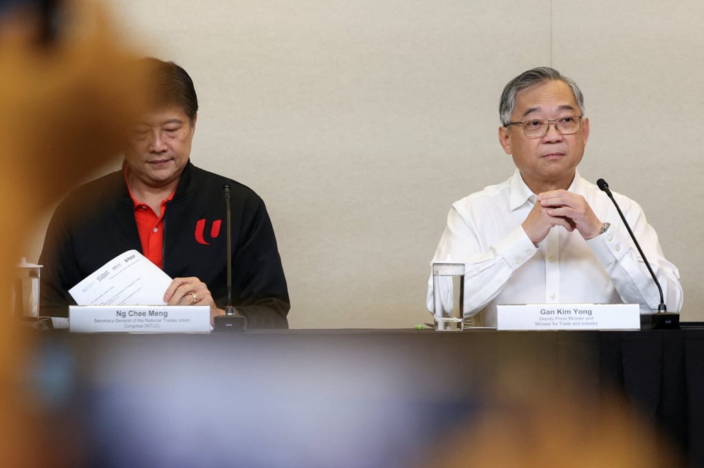 新加坡副总理兼贸工部长颜金勇(右)本月早些时候主持美国关税特别工作组会议。图片来源:路透社