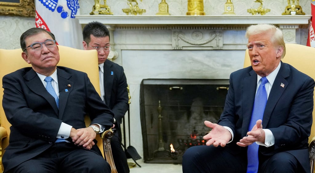 2月7日,美国总统特朗普(右)在白宫会见日本首相石破茂。图片来源:路透社